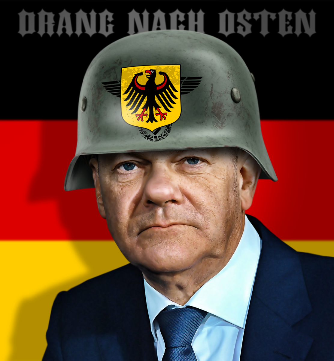 Канцлер Германии Олаф Шольц в каске. Рисунок