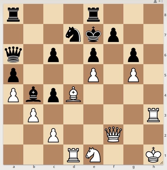 Окончание партии Е. Владимиров - Харитонов, 1977 год. Белые начинают и выигрывают в 4 хода. Подписывайтесь на канал, будут новые интересные задачи. Решение смотрите далее. 1. Белые отдают ферзя на f6. 1. ................ черные бьют конем на f6. 2. Белые отдают слона на с5. 2. ........... черные бьют слоном на с5. 3. Белые бьют пешкой на f6. 3. ............. черные идут королем на f8. 4. Белые ставят мат ладьей на h8. Следующая задача тут>>>>