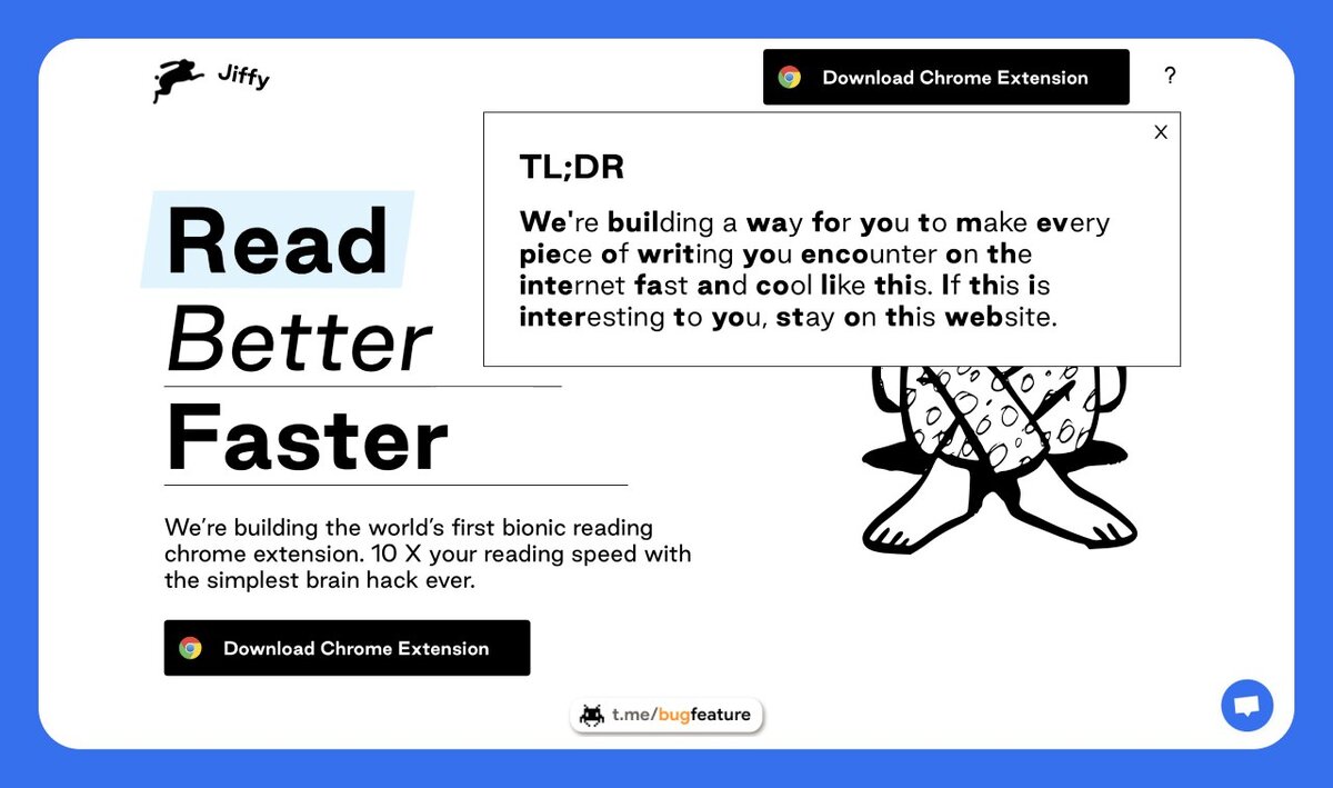 Нашему мозгу не нужно видеть всю последовательность букв, чтобы понять, что за слово мы видим: он считывает пару символов, форму слова и достраивает остальное за доли секунды. Jiffy Reader позволяет использовать этот трюк для того, чтобы увеличить скорость чтения. Расширение выделяет первые буквы слов жирным начертанием, таким образом инструмент плавно направляет ваш взгляд по странице с помощью этих точек фиксации и мозг быстрее улавливает смысл слов. В настройках расширения вы можете включить или выключить режим быстрого чтения, настроить интервал акцентов (например, чтобы выделять не каждое слово, а через 1-4), а также задать число символов, которые будут выделяться в каждом слове: от 1 до 3. Расширение доступно для браузера Google Chrome. Исходный код доступен на GitHub. Проект полностью бесплатный, рекламы нет. Разработчики также планируют выпустить версии для других браузеров. #расширение #chrome