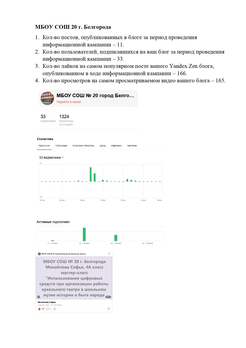 Результаты популяризации школьного блога в Yandex.Zen