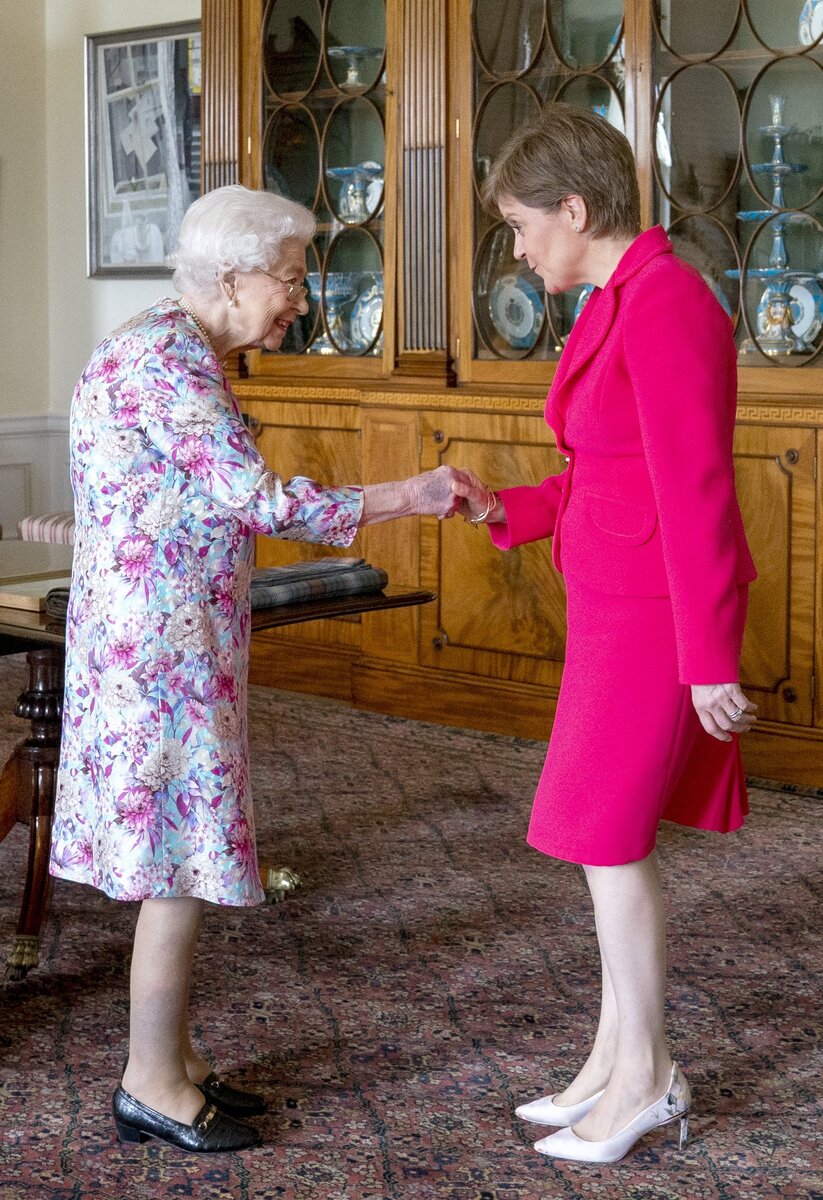 Для приема гостей Елизавета в очередной раз выбрала красивое платье с нежным цветочным принтом. И конечно бессменные любимые украшения - жемчужные серьги и жемчужное ожерелье. Королева также встретилась с председателем шотландского парламента Элисон Джонстон. Принц Чарльз (в Шотландии - герцог Ротсей) и графиня Уэссекская (в Шотландии - графиня Форфар) в тот день своими мероприятиями отдали