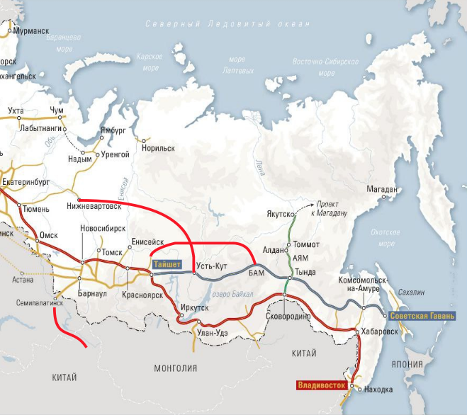 В планах РЖД постройка северо-сибирской железной дороги, но если учесть прочие заметки в моем блоге, вырисовывается такая картинка. 1. Нижневаторск-Усть-Кут вдоль каменной тунгуски и плотин 2. обход северомуского тоннеля от Тайшета. Также чтоб два раза не вставать нарисовал новую дорогу в Китай от Семипалатинска, в том же районе может проходить трасса Меридиан, если её продлить через казахстан до западной Сибири, к примеру до Бийска.