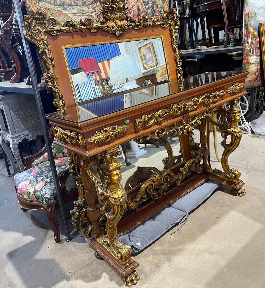 Роскошная консоль с зеркалом в дворцовом стиле. Западная Европа, середина XX века. В наличии 👍 Подробности по запросу.