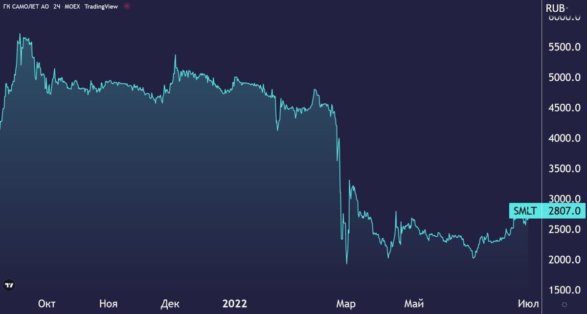 Российский застройщик тоже решил заплатить, но уже за текущий год Самолет: МСар = ₽161 млрд Р/Е = 26 ❗️Акционеры компании утвердили решение о выплате дивидендов за 1 квартал 2022 года. Их размер составит ₽41 на акцию. 📈После такого решения акции Самолета (SMLT) растут на 6%.
