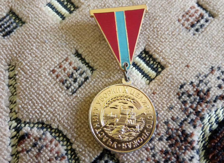 В семейных закромах у нас есть знак (или медаль?), который вместе с другими советскими наградами передается по наследству. Вот так он выглядит: Участнику уборки Х целинного урожая Именно такая надпись изображена на лицевой стороне значка. В центре - изображение комбайна во время работы. На оборотной стороне в центре указан год 1964 и надпись "Казахская ССР". Знак изготовлен из алюминия. Судя по всему, это обычная юбилейная медаль, так как других годовщин уборки целинного урожая я в Интернете не нашел. По информации из Интернета, знак производился на двух дворах - ЛМД и ММД. На фото представлен знак ММД. Каких-то интересных фактов про знак я не нашел, но сделал вывод, что знак является очень распространённым, так как выдавался всем участником, коих было, естественно, очень много. На этом же "мешке" в продаже выставлено несколько десятков таких знаков. В среднем подобный знак торгуют по цене 100-150 рублей. Но есть и те, кто имеет большое желание получить за знак 800-1000 рублей.