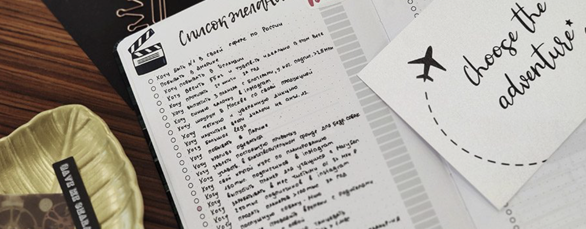 Пока желания хранятся в уме, а не в планере — они кажутся нереальными и абстрактными. А часто просто забываются. Написав их и периодически заглядывая в свой список, вам будет проще и гораздо быстрее воплотить их в реальность.