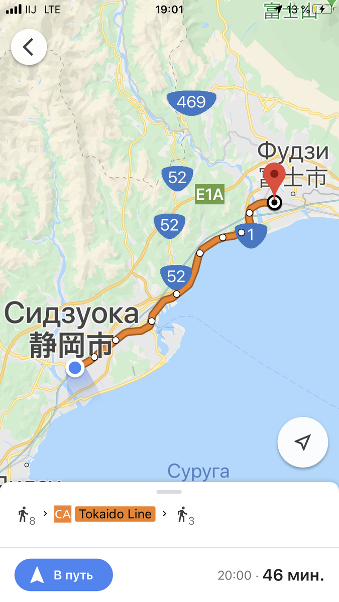 Сегодня я еду в провинцию Суруга и ее столицу, город Сидзуока. Все эти населенные пункты лежат на моем пути в Осака. Билет до Сидзуока на обычный не скоростной поезд, стоит 590 йен, это около шести долларов. Ехать минут сорок.
