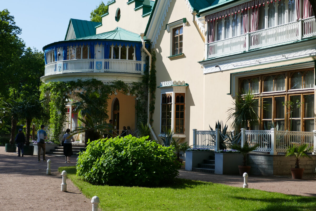 Продолжаю рассказ о дворцово-парковой архитектуре – объектов исторического наследия Санкт-Петербурга. Дворец Коттедж - главная постройка парка «Александрия». Этот «сельский домик» неподалёку от парадного Петергофа строится по заказу императора Николая I в духе неоготике, т.к. в середине 18 века было увлечение Средневековьем. «Сельский домик» создавался в духе английских загородных вилл для Александры Федоровны, любимой жены царя, которая не любила помпезных парадных интерьеров. В ее честь поместье названо с 1829г «Александрией». Даже герб придумал поэт В.А.Жуковский по просьбе Николая I (синий щит с мечем через венок белых роз). Строительство производится в 2 этапа(1753-1831гг, архитектор А.А.Менелас; 1841-1842гг, архитектор А.И.Штакеншнейдер). Неоготика проявляется не только в архитектуре, но и в убранстве интерьеров. Росписи интерьеров Коттеджа выполнял итальянский декоратор Д.Б.Скотти. Коллекция живописи дворца включает произведения выдающихся отечественных художников: И. К. Айвазов