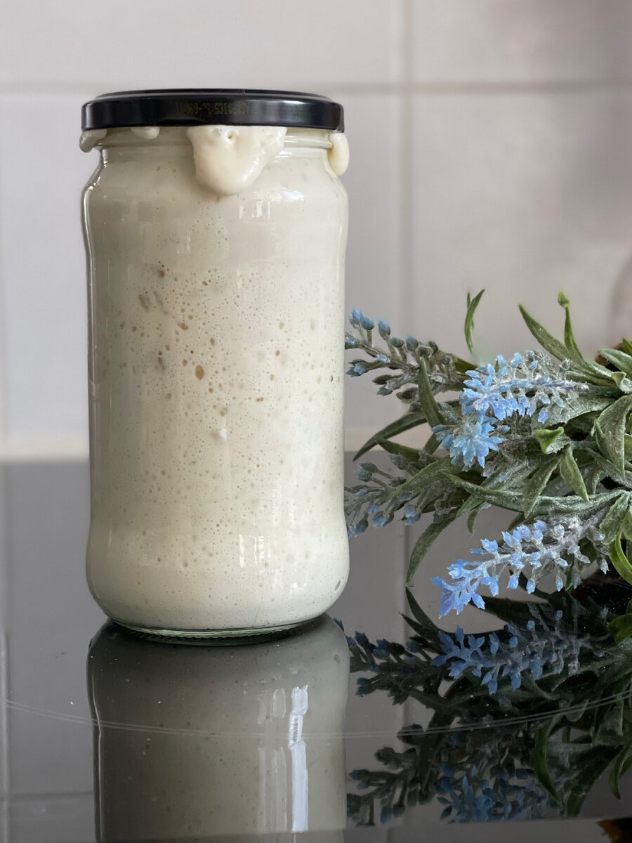 Не подписан? Подпишись!☺️ Для создания пшеничной закваски вам нужна готовая хорошая ржаная закваска. Как ее сделать см пост ниже. На создание ржаной закваски к вас уйдет около 2 недель в зависимости от муки и температурных условий в вашем доме. Всё рассказала в посте ниже. Итак, 📌берем чистую банку, 15 гр ржаной закваски, 30 гр белой пшеничной муки в/с и 30 мл бутилированной воды комнатной температуры. Тщательно перемешать, чтобы не осталось непромешанных областей. Накрыть крышкой и убрать в тепло. 📌Через 12 часов делаем все тоже самое - оставляем из общего количества 15 гр закваски, добавляем по 30г белую муку и 30г воду, перемешиваем и в тепло на 12 часов. Сделать так нужно 3 раза! На 4 раз у вас будет готова пшеничная закваска. Остатки закваски можно складывать и убирать в холодильник, тк закваска уже готовая, патогенов в ней нет, только полезные молочнокислые бактерии! И на остатках закваски после кормлений можно печь блины и оладьи, см предыдущий и следующие посты. подроб