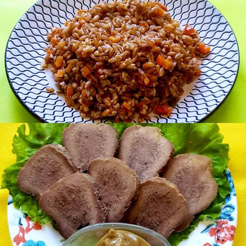 Сегодня я объединила вместе два блюда, которые, по-моему мнению, никто раньше не объединял: язык говяжий и полбу. Подавала на отдельных тарелках. И получилось очень вкусно! Экспериментируйте, и наслаждайтесь вкусом! Ингредиенты: Говяжьего языка, Полбы, Перца болгарского, Помидор, Моркови, Соль , Масло растительное, Перец чёрный молотый Способ приготовления: Отварите язык в подсоленной воде в течение 3-3,5 часов. За 10 минут до окончания варки положите в бульон специи по вкусу, лавровый лист. Когда язык будет готов, опустите его в холодную воду, очистите от шкурки. Уберите язык в холодильник, чтобы остыл. Затем нарежьте тонкими аккуратными ломтиками. Подавайте с горчицей или хреном. Поставьте в кастрюле воду, доведите до кипения. Затем всыпьте в кастрюлю с кипящей водой промытую полбу (1 часть полбы, 2 части воды). Посолите, доведите до кипения, уменьшите огонь и продолжайте варить под закрытой крышкой на слабом огне. Тем временем нарежьте мелкими кубиками болгарский перец (у меня перец