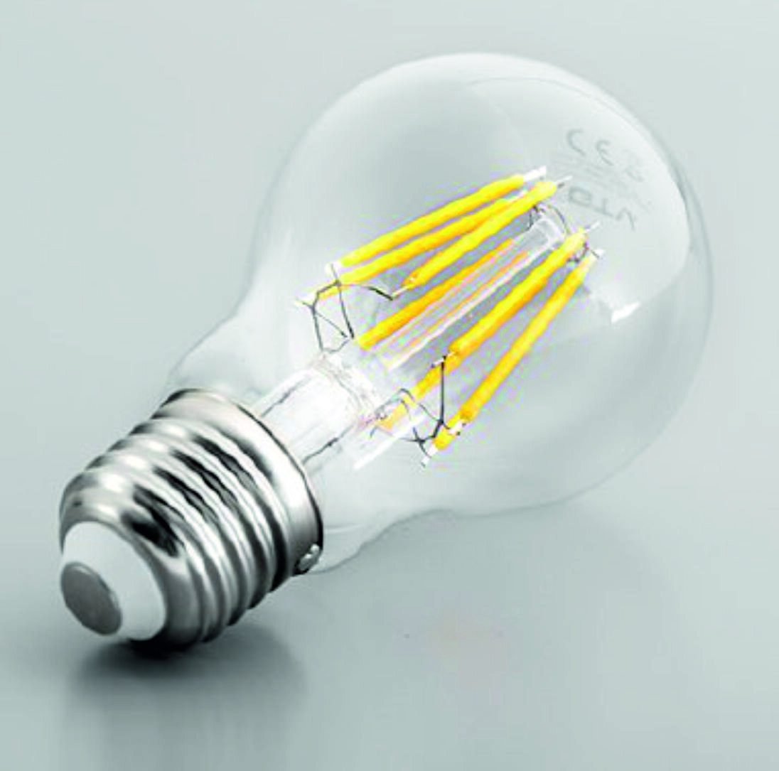 Диоды, имеющие форму нитей накала, характеризуются высокой эффективностью и энергоэффективностью. Преимуществом этого решения является отсутствие заметных печатных схем и структур светодиодов. После включения филаментные светодиодные лампы обеспечивают приятный цвет (цветовая температура 3000 К