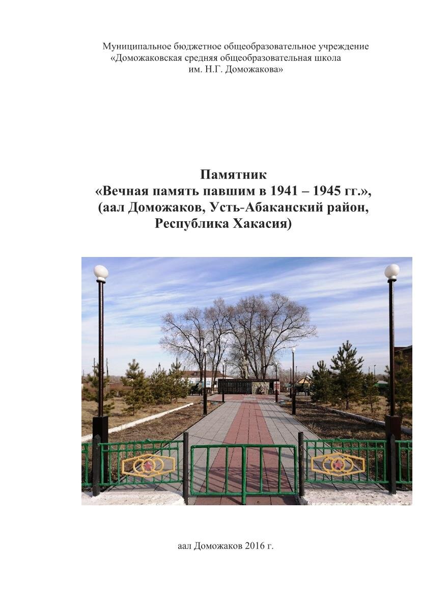 Подготовлена работа с информацией про Памятник "Вечная память павшим в 1941-1945 гг." ученицей 5 класса МБОУ "Доможаковская СОШ им. Н.Г. Доможакова" Смирновой Софьей под руководством Ивановой В.В. и Ивановой Е.В.