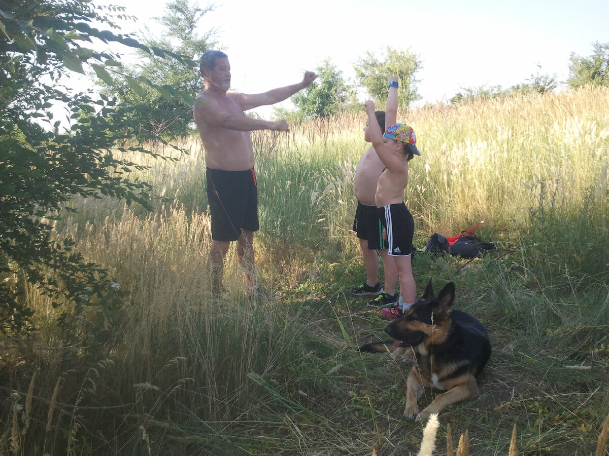 Месяц лета мы с мужем уже " отпахали". Результаты прогулок радуют. Внуки довольно прилично делают зарядку, не ноют по пути, хотя идём три часа по сплошному солнцу. С отдыхом, правда, но больше для собаки.