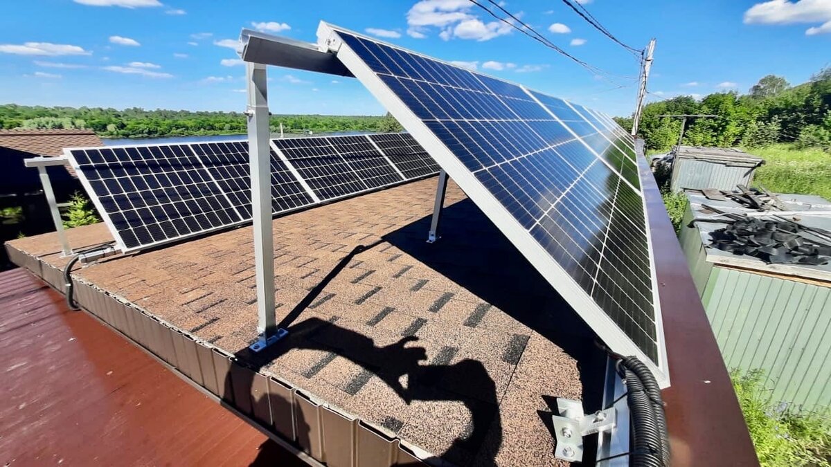 Уверенность в бесперебойной работе оборудования в частном доме – вот что получают клиенты Teslum, устанавливая гибридную солнечную электростанцию. А если инвертор способен отдавать сгенерированные излишки в сеть, то еще и дополнительную экономию на электроэнергии помимо той, что дом потребит от панелей днем. Сформирован среднегодовой оптимальный угол уклона панелей в Нижегородской области 39°, путем применения специальных креплений.