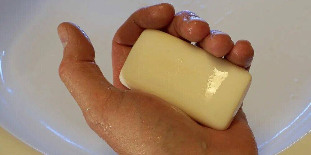 Дальше берем немного "комета" и чистим руки. Но недолго буквально 30 секунд. Если нет "комета", возьмите хозяйственное мыло, средство для мытья посуды либо какое-то другое щадящее средство бытовой химии.