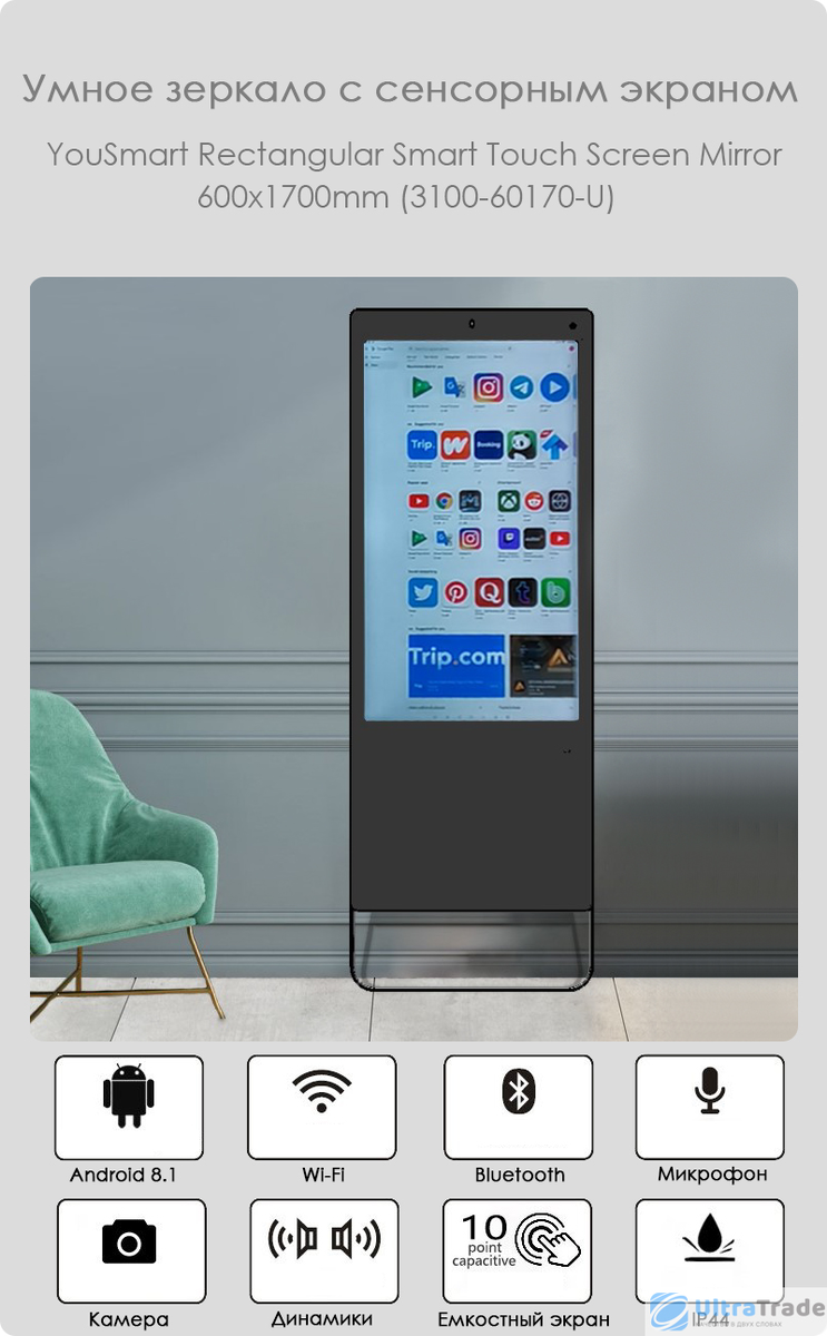 Умное зеркало с сенсорным экраном YouSmart Rectangular Smart Touch Screen Mirror 600х1700mm (3100-60170-U)