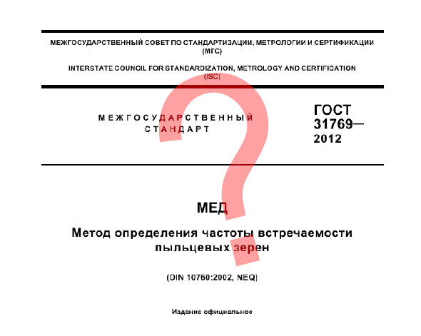 1) ГОСТ 31769-2012 «Мед. Определение частоты встречаемости пыльцевых зерен».