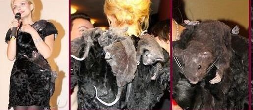 Она у нас художник по костюмам была, и мы вместе разрабатывали вот эти все костюмы. И мне хотелось, чтобы ее работу увидели. Потому что я ею искренне восхищаюсь, и мне это нравится. Но я не могу отвечать за массы, которые делают из этого какой-то идиотский вывод, что я обвесилась дохлыми крысами. Но это же маразм, это же никакие не дохлые крысы, это арт-платье.