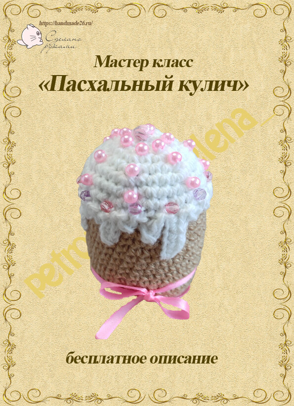 Обычно к светлому празднику Пасхи хозяйки пекут или покупают куличи, красят яйца. А я приглашаю вас вместе со мной связать пасхальный кулич. Предлагаю небольшой мастер класс. Мастер класс осилит даже новичок. Размер кулича зависит от выбранной пряжи и плотности вязания. Кому удобно кулич можно вязать по спирали без петель подъема. Чтобы кулич устойчиво стоял провязав 5 рядов вырежьте из картона или пластика основу и перед тем как набивать кулич вставьте ее в дно. Украшение кулича это полностью ваша фантазия. Я использовала бусины. Легкого всем вязания и красивых куличей!!!!! Мои мастер классы можно увидеть тут: https://handmade26.ru/catalog/vyazanie/master-klassy/ Готовые работы тут: https://handmade26.ru/