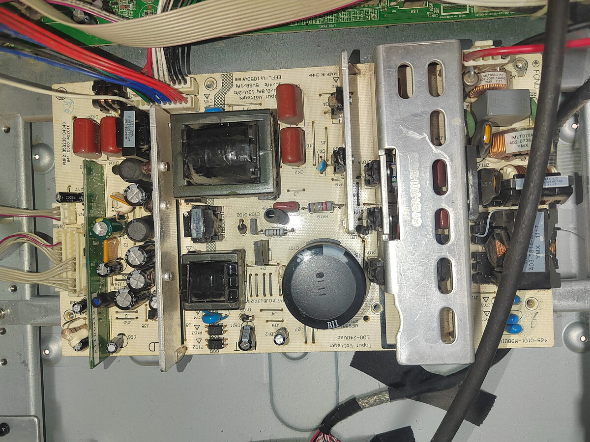 Всем привет. На ремонт принесли данный телевизор с неисправностью не включается, синий индикатор питания не горит и на кнопку включения не реагирует. Первая мысль была о вздутых конденсаторах. Но разобрав телевизор визуально, все конденсаторы были целые. Блок питания здесь стоит-mip988a-k2 ver; 1.0. Маин плата 471-01a2-64201g Ver a2. Проверив предохранитель по сети 220в он оказался целый. Далее прозвонив все цепи, на предмет короткого замыкания я ни чего не обнаружил. Включив тв в сеть и замерив вторичные напряжения, было лишь 5в дежурного напряжения. Думал может на маин плате какие стабилизаторы вышли из строя, но и здесь промах((. Проверив все электролитические конденсаторы в блоке питания они оказались все в норме. И вдруг при последующем осмотре я обнаружил неисправность, это оказался керамический конденсатор, на плате ck7, он был потрескан. Вот что значит не внимательность.))) Вот такие трещины у него были с двух сторон. Заменив этот конденсатор, и включив тв в сеть загорелся с
