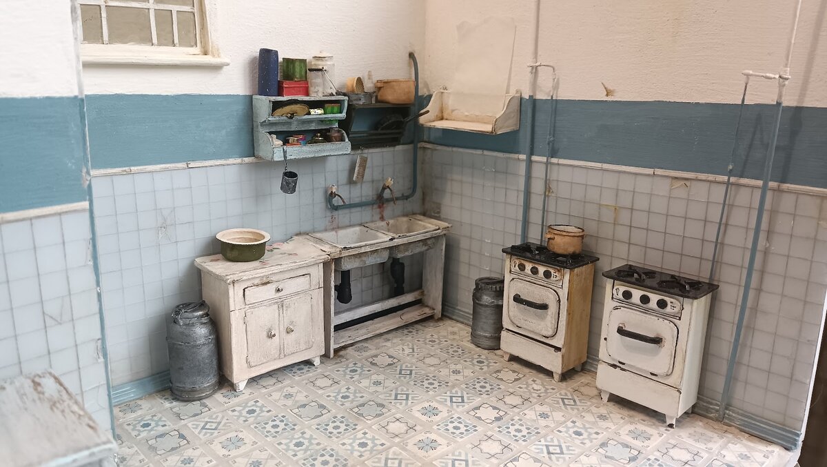 Всем привет, покажу текущее состояние румбокса "Кухня в коммуналке". Что сделано на сегодня? Голубая полка полностью готова, зеленая полка заполнена наполовину, надо будет еще добавить туда несколько предметов. На самом деле, наполнение полок, шкафов достаточно сложно делать. Чтобы выглядело достоверно, нужно много всего. И чтобы было и разное, и в то же время сервизами, и если одни и те же вещи, то чтобы не были совсем одинаковыми. Например, наверняка во всех советских семьях было по несколько тёрок. Но вряд ли эти тёрки были одинаковыми. Вот и приходится делать одну такую, вторую другую. В общем, вроде бы мелочи, а времени и сил на них нужно много Белая полка пока висит на малярном скотче, думаю, где ее закрепить. Возможно, будет еще одна полка над плитами. А может и не будет, посмотрю еще. Одну плиту решила сделать почище, чем вторую. Наполнение полок чуть поближе Тут в ход пошло всё: баночки, бусины, картон, фольга И напоследок фото с гигантской батарейкой Всем спасибо за просмотр