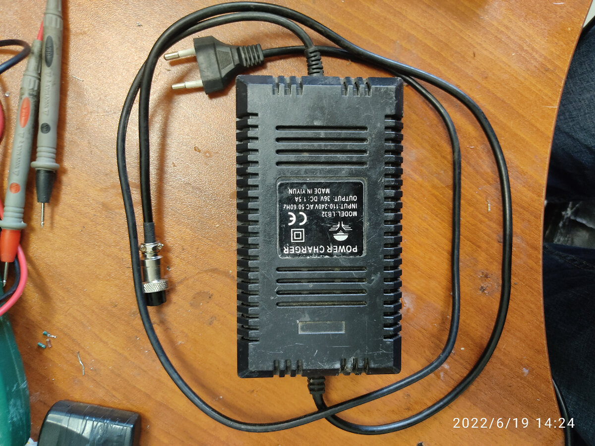 Включил. Светодиод засветился. Подключил мульт. На выходе 40 с небольшим вольт, что для аккумулятора на 36 вольт вполне себе нормально. Собрал и включил ещё раз. (Старая привычка оставшаяся от работы телемастером проверять работоспособность после каждой операции сборки). Все работает. Отдал директору на проверку, поскольку исправных аккумуляторов для проверки не нашлось.