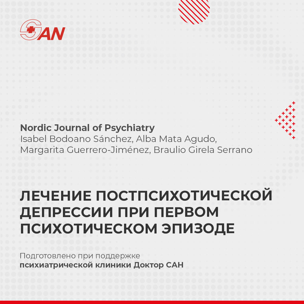 Постпсихотическая депрессия (ППД) после первого психотического эпизода (ППЭ) отличается от других депрессивных синдромов при хронической шизофрении по своей этиологии, симптоматике и прогностическим последствиям. Цель систематического обзора состояла в том, чтобы выяснить, доказали ли эффективность какие-либо фармакологические или немедикаментозные вмешательства в отношении депрессивных симптомов после ППЭ.
