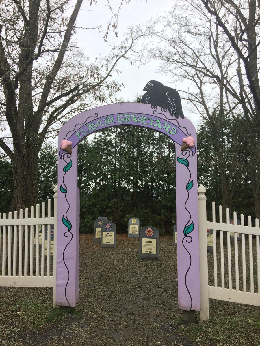 Здравствуйте читатели «Фабрики мистики», а помните ли Вы мороженное которым лакомились в детстве? Конечно помните, ведь это не забываемый вкус, в поисках которого некоторые снова и снова попадают в ловушки маркетологов, обещающих «именно тот вкус». Но после дегустации вы понимаете, что все это лишь слова, и тот вкус остался лишь в памяти детства/юности/зрелости. А знаете ли Вы, что существует достаточно известная фабрика мороженого Ben & Jerry's, руководство которой основало такое место, как «Кладбище вкусов», куда попадают старые или коммерчески не выгодные рецептуры выпускаемого ранее мороженного. 🪦🍦Что из себя представляет «Кладбище вкусов» Оно находится в Уотербери, построенное в 1997 году, началось с четырех памятников в память о любимых вкусах, которые больше не выпускались фабрикой, чтобы потребители могли оплакивать потерю своих любимых вкусов. Кладбище выполнено в типичном творческом и веселом стиле Ben & Jerry's с выбитыми на надгробиях причинами смерти для каждого вкуса, д