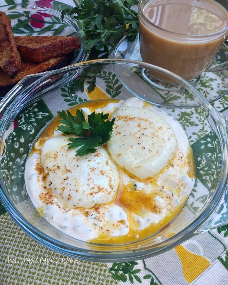 #летнееменю #завтрак #ужин #чылбыр #яичницапотурецки #food_Love ♥️ 🍳 Чылбыр — вкусная яичница по-турецки: пикантный завтрак или ужин для всей семьи. Ингредиенты: яйца, натурального йогурта, чеснока, ломтика ржаного хлеба, сливочного масла для тостов, сливочного масла для чылбыра, соль по вкусу, перец чёрный молотый, паприка молотая, свежая зелень петрушки Способ приготовления: Сварить яйца-пашот. Как это сделать очень просто и быстро, подробно описано в этом рецепте. 👉🏻 Йогурт смешать с пропущенным через пресс чесноком и нарезанной петрушкой, добавить соль и перец. Хлеб подсушить в тостере или обжарить в сковороде на сливочном масле до золотистой корочки с двух сторон. На сковороде растопить сливочное масло, добавить соль, паприку и прогреть всё вместе не доводя до кипения. На тарелку положить йогурт, в середине сделать углубление, выложить яйцо-пашот, полить ароматным маслом и посыпать петрушкой. Подавать с ржаными тостами. Приятного аппетита! 👌🏻😋