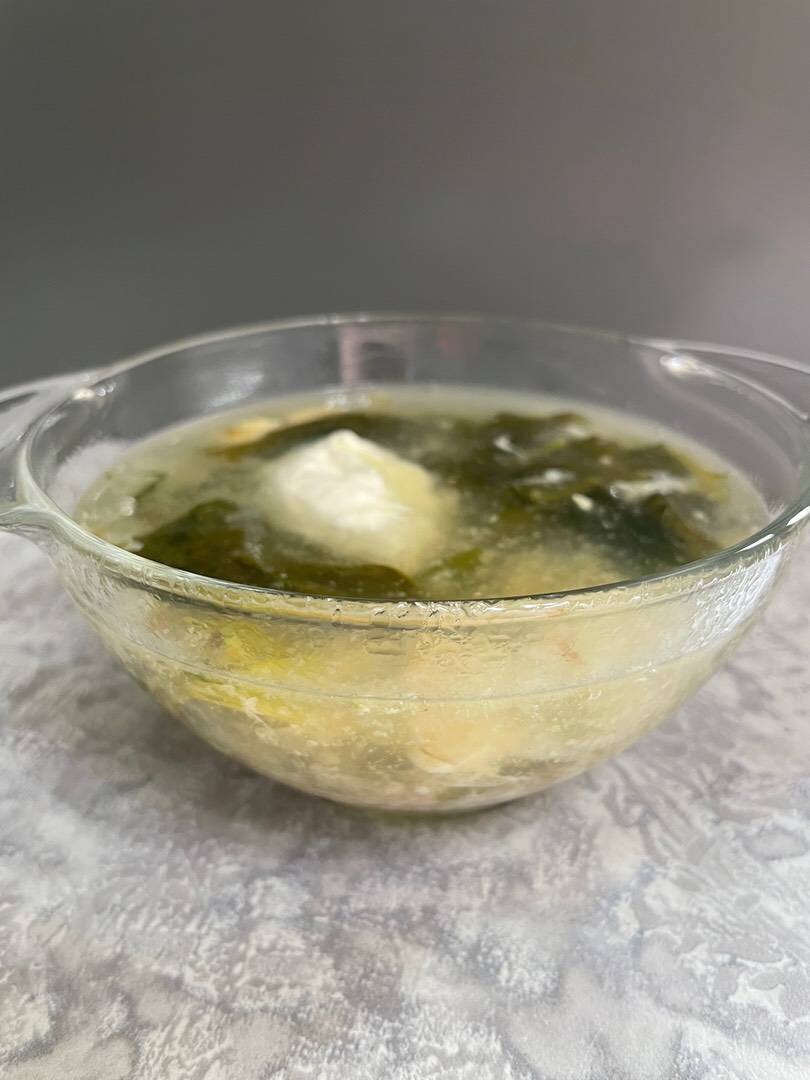 Самый настоящий летний борщ 🫶 Ингредиенты: Яйца, Картошка, Курица, Щавель, Лук, Соль, перец Способ приготовления: Варим бульон (у меня на курице) солим, перчим сразу по вкусу. Далее обжариваем Лук до золотистой корочки. Как бульон сварился, отделяем мясо от кости и возвращаем его в кастрюлю, с ним же лук и нарезанную картошку кубиком. Варим пока картошка не будет готова, добавляем варёное яйцо надрезанное кубиком. И выключаем плиту. Сразу же рвём щавель не мелко (он уменьшится сильно) и кидаем в суп, все перемешать и дать постоять 5-10 минут под закрытой крышкой. Добавляем сметанку и наслаждаемся ☺️ Приятного аппетита 😋
