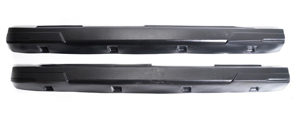 Они изготовлены из листового АБС-пластика толщиной 1,8 мм. Поверхность порога шагренью, неокрашенная. Габариты: 180x20x14 см;