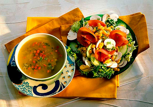 - Салат из помидоров и огурцов 100 гр + суп из чечевицы 200 гр + хлеб ржаной 20 гр + индейка вареная 100 гр