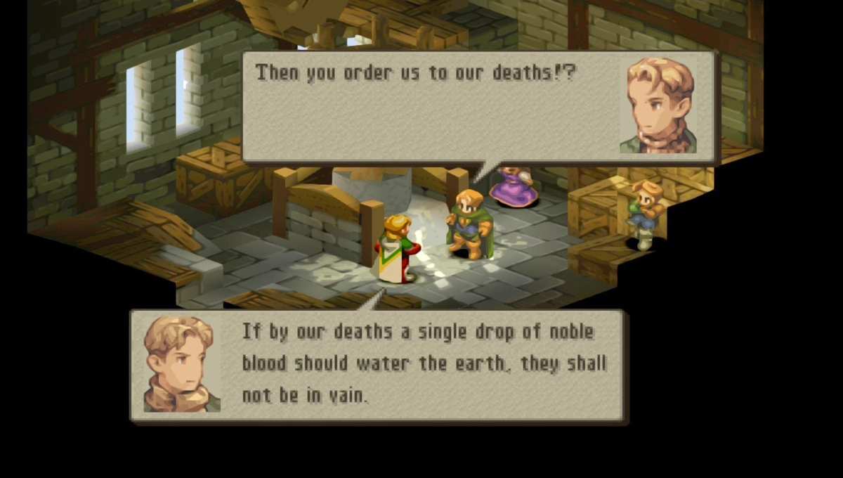 И напоследок: игра полностью переведена заново, с нуля. В случае с наделенной сильным сюжетом FFT, испорченной на PS1 ужаснейшим переводом, уже это является достаточным основанием для покупки переиздания. Несмотря на то, что локализаторы явно переборщили с переводами названий заклинаний и имен персонажей (к примеру, вполне нормальное имя Algus Sadalfas вдруг превратилось в Argath Thadalfus), диалоги в игре стали просто бесподобными. Вспомните, как говорила знать в Final Fantasy XII: возвышенно, высокопарно, используя речевые обороты, давно уже вышедшие из употребления в разговорном английском – так вот, The War of the Lions вся и полностью переведена в таком ключе. Здешними беседами можно любоваться – герои настолько великолепно жонглируют словами, что после «Войны львов» возвращаться к обычным диалогам других RPG, где язык остается стабильно на уровне младшей школы, без боли невозможно.
