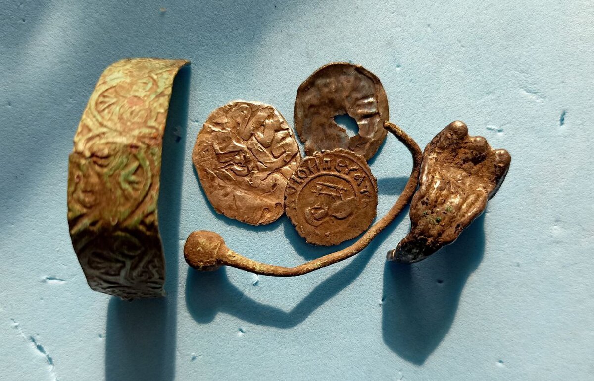 Решил я свои видео дополнять описательной частью. Самому интересно и другим поучительно. Ведь я даже не представлял о существовании этих монет и артефактов, не знал их применения, а голова уже стремилась придумать свой вариант))) Поэтому в видео могу выдать различную версию, а в статье уже будет версия проработанная. Поехали по списку: 2. Золотоордынский дирхем. Хоть монета сильно пострадала, но знающие люди помогли. Хан Науруз, чекан Гюлистана, 761 год хиждры., 1383 по нашему. 3. Булгарская серьга в виде знака вопроса. Сделана из меди. Очень часто встречается на булгарских и золотоордынских поселениях. Имеет различные вариации подвеса: жемчужины, бусины, плетеную проволоку, в виде булавы и так далее. Изготавливались из меди, серебра и золота. В нашем случае подвес ложный, все сделано одной отливкой. 4. Фрагмент серебряного булгарского перстня на очень тоненький пальчик. Кстати, руки у предков были меньше, поэтому размеры колец часто кажутся детскими. 5. Фрагмент медного браслета с