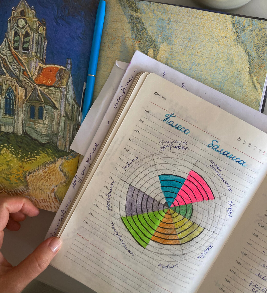 Встаю в плохом настроении, завариваю чай, и понимаю, что дел на день огромное множество, а делать всё это совсем не хочется. Приступаю к одному, потом бросаю незавершённым и также прохожусь по другим задачам. По итогу к вечеру накопилась усталость. А по сути — ничего полезного не сделала. Знакомая картина? Тогда предлагаю способ, которым я пользуюсь постоянно, когда чувствую путаницу и недовольство от качества жизни. Колесо баланса — это практика, которая позволяет проанализировать все сферы жизни. Шаг первый — немного порисуем. Начертим круг и разделим на 8 секторов (или на 12). Я использую 8: Можно добавить и другие сферы по желанию. Шаг второй — нужно проанализировать, насколько вы довольны каждой сферой. Разделите каждую сферу на 10 отделений и отметьте тот уровень, на который вы можете оценить эту сферу. Например, здоровье на 2 из 10, а друзей на 9 из 10. Шаг третий — найти провисающие и, наоборот, самые сильные сферы. К провисающим пишем цели, и делаем упор на этих зонах целы