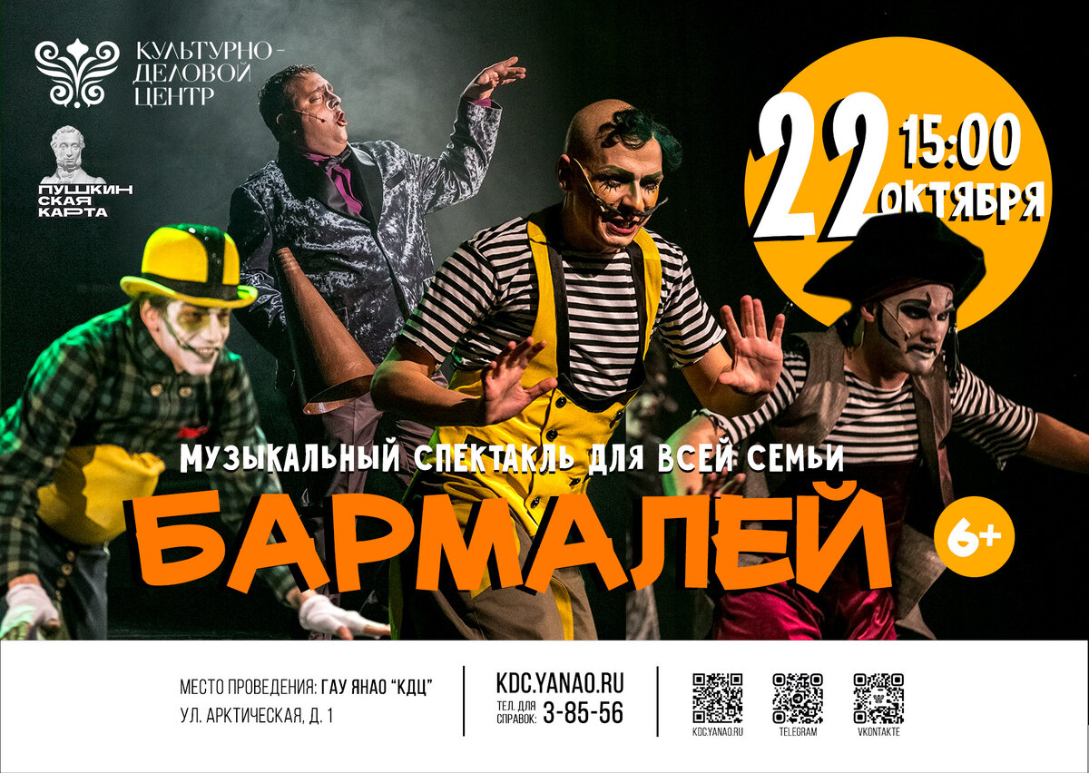Что главное в мюзикле? 🤔 Правильно, музыка!🎶 22 октября в 15:00 состоится музыкальный спектакль для всей семьи «Бармалей», в исполнении артистов Театра Эстрады имени Аркадия Райкина.🤩 Спектакль, который станет настоящим подарком для ценителей жанра. 🎁 А также для всех, кто ждёт от театра зрелищности и захватывающего действия. 👀 Встреча с героями, знакомыми с детства, принесёт немало открытий. А музыкальные темы, созданные гениальным композитором Георгием Фиртичем, зададут спектаклю живой и безудержно весёлый ритм.🤩 Билеты в кассе и на официальном сайте 👉 https://quicktickets.ru/salehard-kulturno-delovoj-centr/… Справки по телефону: 3-85-56 Билеты доступны по Пушкинской карте!👍