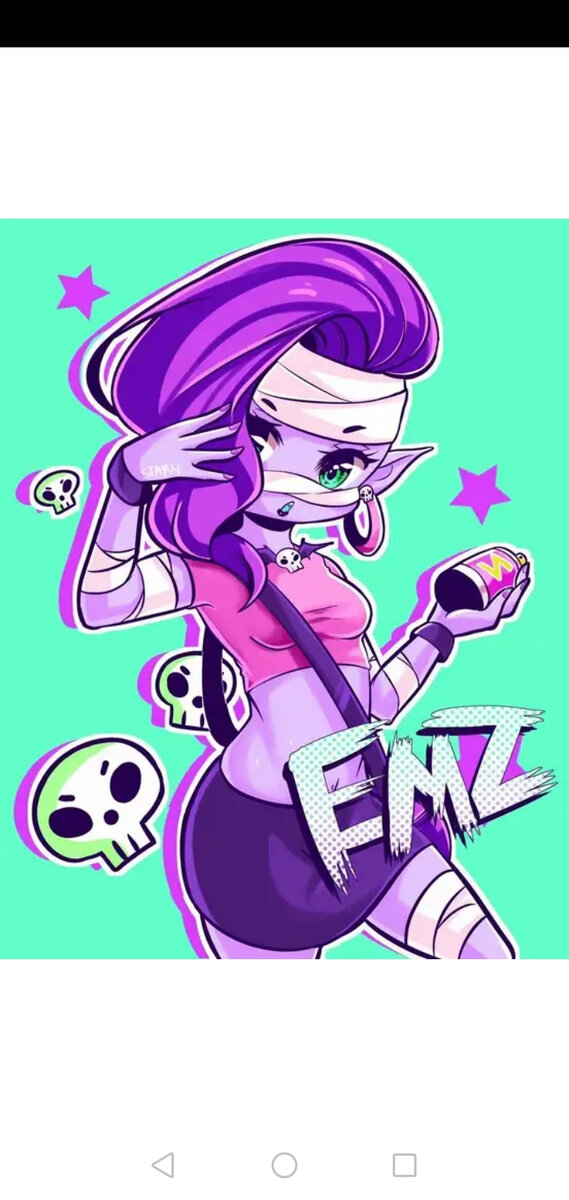 Привет!!! И так начнём. Эмз - боец на пути к славе. Супер - огромный круг, который замедляет всех противников. У Эмз есть родственники : Мортис и Френк ( не Фенг). И так история: Эмз - молодая студентка, которая мечтала сать прихмахером. Но завистники облили её кислотой и девушка умерла. Дядя Мортис ожевил её и замотал лицо. С тех пор она мстит всем.