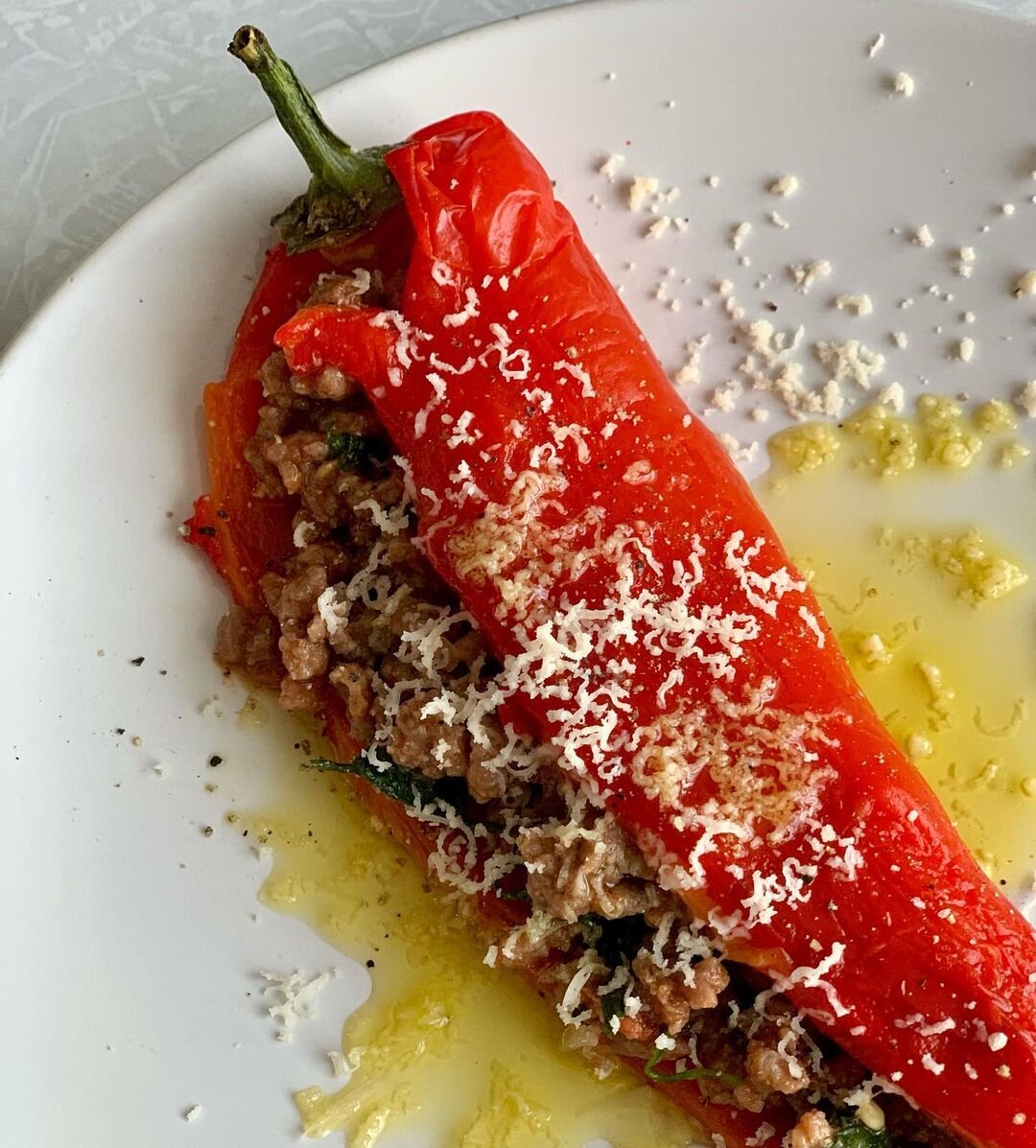 🌶Мне не нравятся запечённые фаршированные перцы, потому что мясо и овощи сложно синхронизируются. В итоге всё или слишком хрустит😬, или смотри первый абзац. Поэтому я готовлю по-другому. Кстати, по этому рецепту перец готовиться быстрее! Способ приготовления 1. Бросьте на решётку перцы. У меня - перцы рамиро. Духовку предварительно разогреть до 200 С. Пеките перцы до подпалин. Минут 20-30 2. Горячие перцы переложить в миску и затянуть пленкой. Семечки не вытаскиваем пока 3. На сковороде обжарить телячий фарш (или любой другой, главное - нежный) с луком, кинзой и помидорами. Можно плеснуть сухого красного. Соль, перец по вкусу 4. С немного остывших перцев снять кожицу и вытащить семечки 5. В каждый перец положить готовый фарш, посыпать пармезаном, сбрызнуть оливковым маслом и соком лимона. Приятного аппетита!
