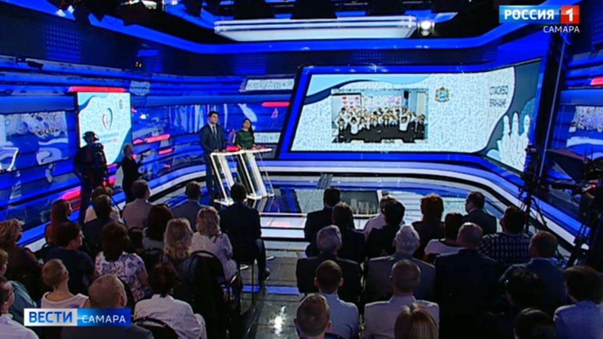 Российские медики отметили свой профессиональный праздник Многолетняя традиция, но в совершенно новом формате. Чествование героев акции «Спасибо врачам!», приуроченное к Дню медицинского работника, впервые состоялось в главной студии ГТРК «Самара». Сверхсовременные медиатехнологии сделали мероприятие доступным для зрителей в каждой точке губернии. Как и прежде, в зале те, кто ежедневно стоит на страже здоровья каждого жителя региона. Руководители медучреждений, врачи, фельдшеры, медсестры – люди, от слаженной работы которых порой зависит жизнь. По традиции, достойнейших работников системы здравоохранения 63-его региона отметили наградами в 9-ти номинациях. Где нашлось место всем – от тружеников сельских ФАПов до руководителей крупнейших учреждений, стоявших в авангарде борьбы с коронавирусом. Разумеется, в этот день прозвучали и слова благодарности от пациентов. Для многих из них знакомство с медиками превратилось в настоящую историю спасения. На сегодняшний день темпы модернизации и