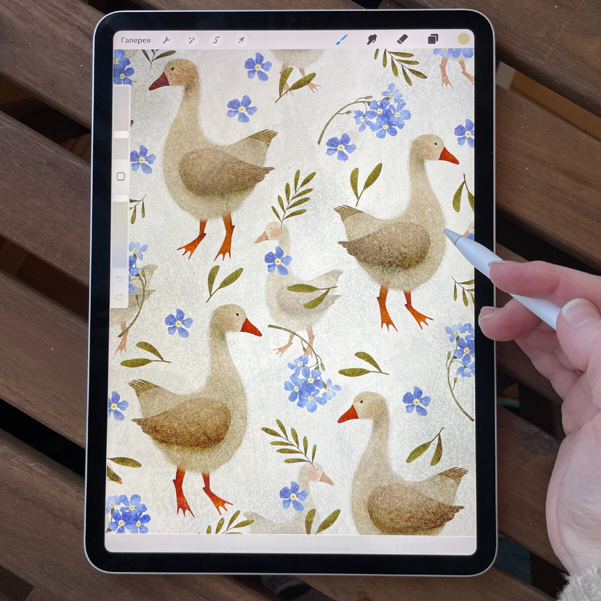 Этих гусей я рисовала ещё в январе этого года, но в Инстаграмм выложить не успела, поэтому покажу их здесь. #паттерны #диджиталиллюстрация #рисование #творчество #искуство #цифровоеискусство