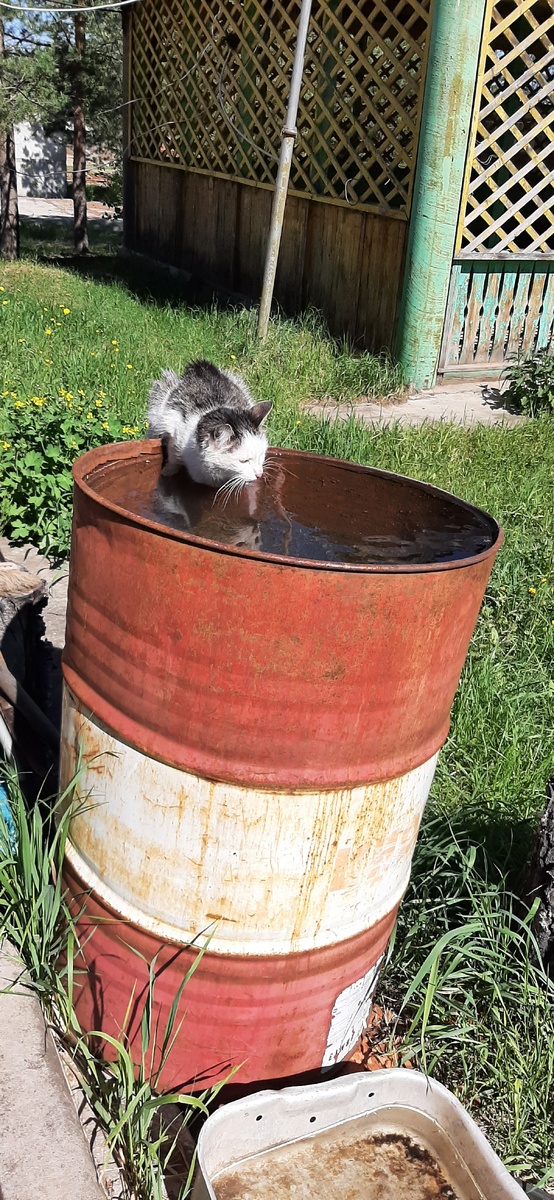 Леся купается или пьет☺До чего же кошки изворотливые!!!