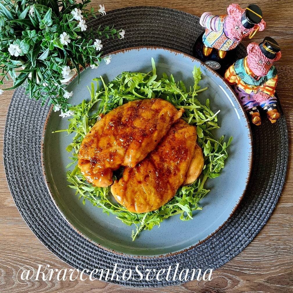#летнееменю Нежная, сочная и вкусная жареная грудка. Готовится очень быстро. За вдохновение спасибо @cook_25978877 Ингредиенты: куриное филе, чеснока, соевой соус, яблочного уксуса, мёд, мука для обвалки, сливочного масла, соль, перец, специи Способ приготовления: Делаем надрезы на филе. Солим, перчим, добавляем приправы по вкусу. Чистим чеснок и смешаем соевый соус, мёд, яблочный уксус. Обваливаем филе в муке со всех сторон. Обжариваем на сливочном масле, на сильном огне 1-2 минуты с каждой стороны. Добавляем ещё сливочное масло, чеснок, выливаем наш соус. Переворачиваем филе и обжариваем еще 3 минуты до легкого загустения соуса. Приятного аппетита!