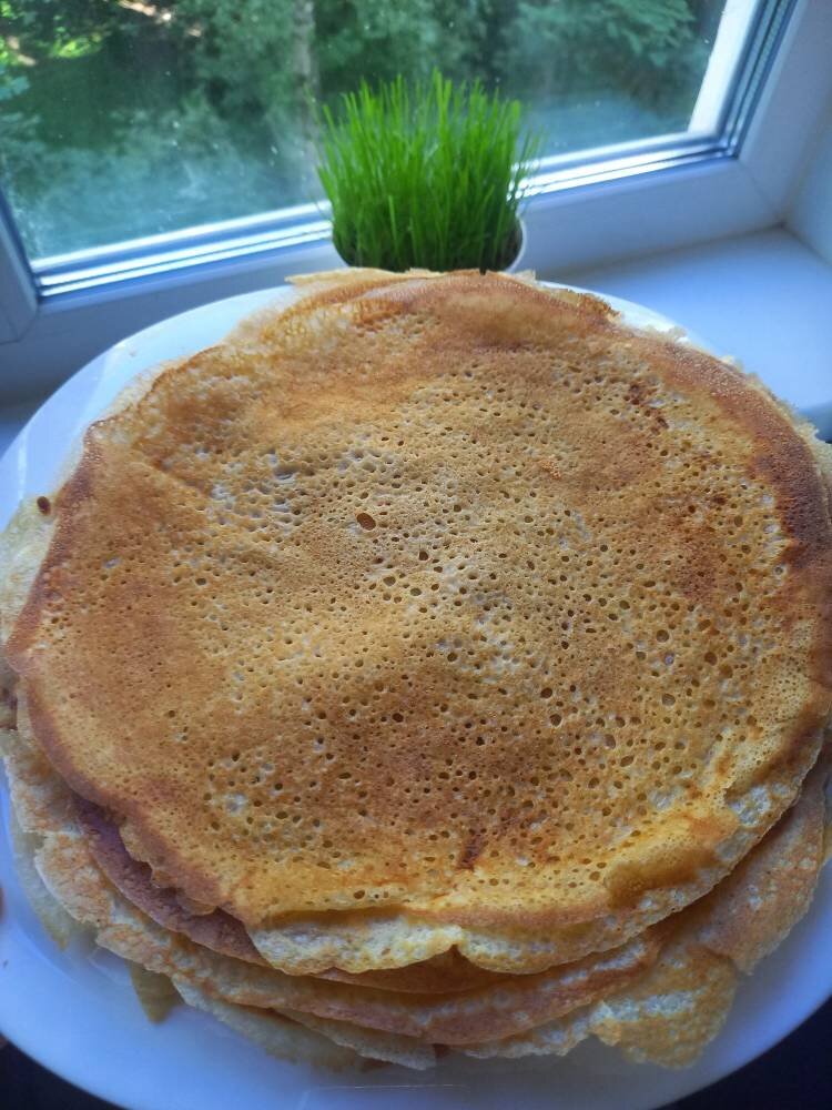 #летнееменю Ингредиенты: яйца, сахара, соли, тёплого кислого молока, муки, разрыхлителя, кипятка, растительное масло Способ приготовления: Яйца взбить с сахаром и солью в миске,добавить молоко. Разрыхлитель смешать с мукой, добавить в миску. Всё хорошо перемешать, чтоб не было комков. Залить крутым кипятком, постоянно помешивая. Добавить растительное масло. Оставить минут на 15-20. Сковороду смазать растительным маслом с помощью кисточки. Налить необходимое количество теста, выпекать с двух сторон на среднем огне. Блинчики получаются очень нежными и вкусными и ажурными. Подойдёт любая начинка. Приятного аппетита)))