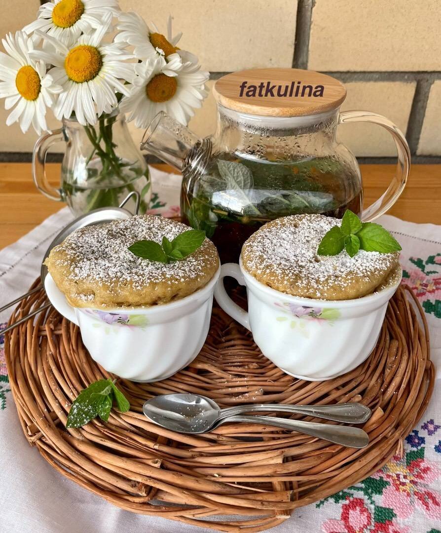 #летнееменю Быстро, вкусно к чаю кекс в микроволновке. Готовьте с удовольствием! Делитесь фото и отзывами, мне будет приятно! Ингредиенты: банан, яйцо, сахар, растительное масло, сок лимона, мука пшеничная, разрыхлитель, соли Способ приготовления: В глубокой миске размять вилкой банан, добавляем яйцо, щепотку соли и сахар, перемешать. Затем добавляем растительное масло, сок лимона, ещё раз перемешать. Всыпаем муку по ложке без горки. Добавляем соду и ещё раз перемешиваем. Тесто раскладываю по чашкам заполняя на 2/3. Отправляю в микроволновку на 4 минуты. Кексы готовы. По желанию посыпаем сахарной пудрой и украшаем листиком мяты. Приятного чаепития!