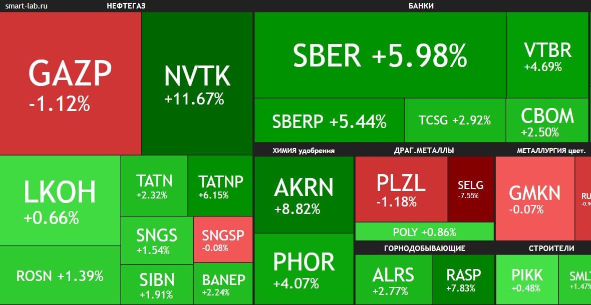 Неделю российский рынок начал на позитивной ноте. Большинство акций находится в зеленой зоне, но причины роста в каждом отдельном случае могут отличаться. Так, причиной сильного роста Новатэка называют прошедший экономический форум ПМЭФ-2022. В то же время, Акрон растет на новостях о сокращении доли основного акционера ниже контрольного значения. Вячеслав Кантор, который владел ~95% Акрона и попал под санкции Великобритании и ЕС, передал 45,1% акций в доверительное управление менеджменту компании. При себе у него остается все еще 40% акций. Вероятно, это только начало пути по “выходу” из-под санкций, поэтому дивиденды Акрона в этом году поставил бы под знак вопроса. Рубль к доллару продолжил укрепляться и достиг уровней 2015 года. Одни экономисты и чиновники заявляют, что крепкий рубль несет вред российской экономике и нужно девальвировать его до 70-80 рублей за доллар. Другие же отмечают, что привязка к “нестабильным” валютам недружественных стран только усугубит ситуацию. 💬 В люб