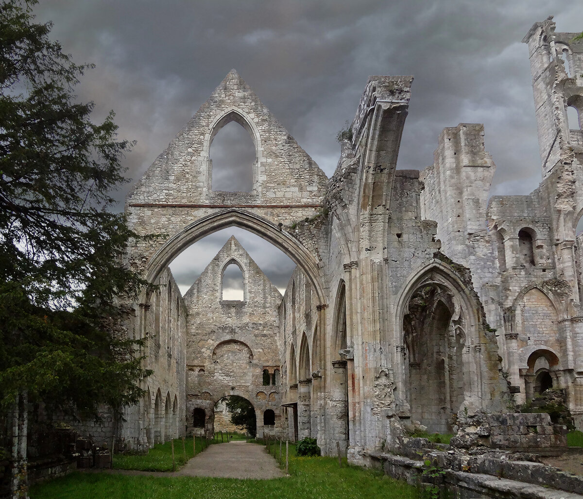 Эти руины по сей день обладают невероятной энергетикой. Монастырь в глухом лесу в излучине Сены был основан святым Филибертом ещё во времена Каролингов, в 654 году.