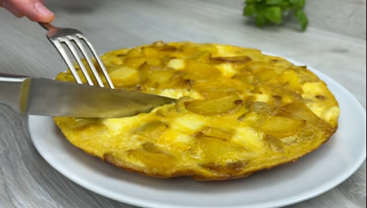Друзья предлагаю приготовить на завтрак идеальный картофельный омлет. Это испанский рецепт подсказала мне подруга, когда болтали за чашечкой чая. Самый вкусный и удивительно легкий в приготовлении картофельный омлет всего из четырех основных ингредиентов. Вам понадобится: Лук-1 шт Оливковое масло-3 ст.л Картошка-3 шт Яйцо-6 яиц Соль по вкусу Перец черный по вкусу Твердый сыр-50 гр Шаг №1 Режем одну луковицу полукольцами, обжариваем до золотистого цвета на сковороде смазанной оливковым маслом Шаг №2 Нарезаем 3 картофелины на небольшие кусочки. Добавляем к луку, при необходимости долить масло, обжариваем до мягкости. Шаг №3 Взбиваем 6 яиц, солим, перчим. Нарезаем 50гр твердого сыра на маленькие кусочки, добавляем яичную смесь. Шаг №4 В картошку выливаем яичную смесь с сыром, обжариваем на слабом огне под крышкой до готовности минут 5. Приятного аппетита!