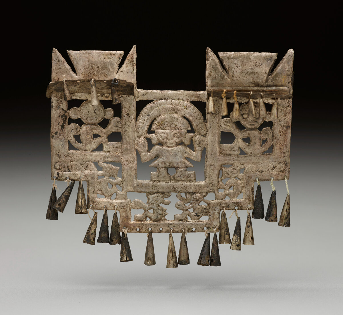 Изделие относится к культуре Чиму – высокоразвитой доколумбовой культуры на северо-западе Перу, существовавшей с 1250 до 1470 гг., пока её не завоевали инки. Выполнено украшение из серебра в период между 1100 и 1440 гг. н. э.