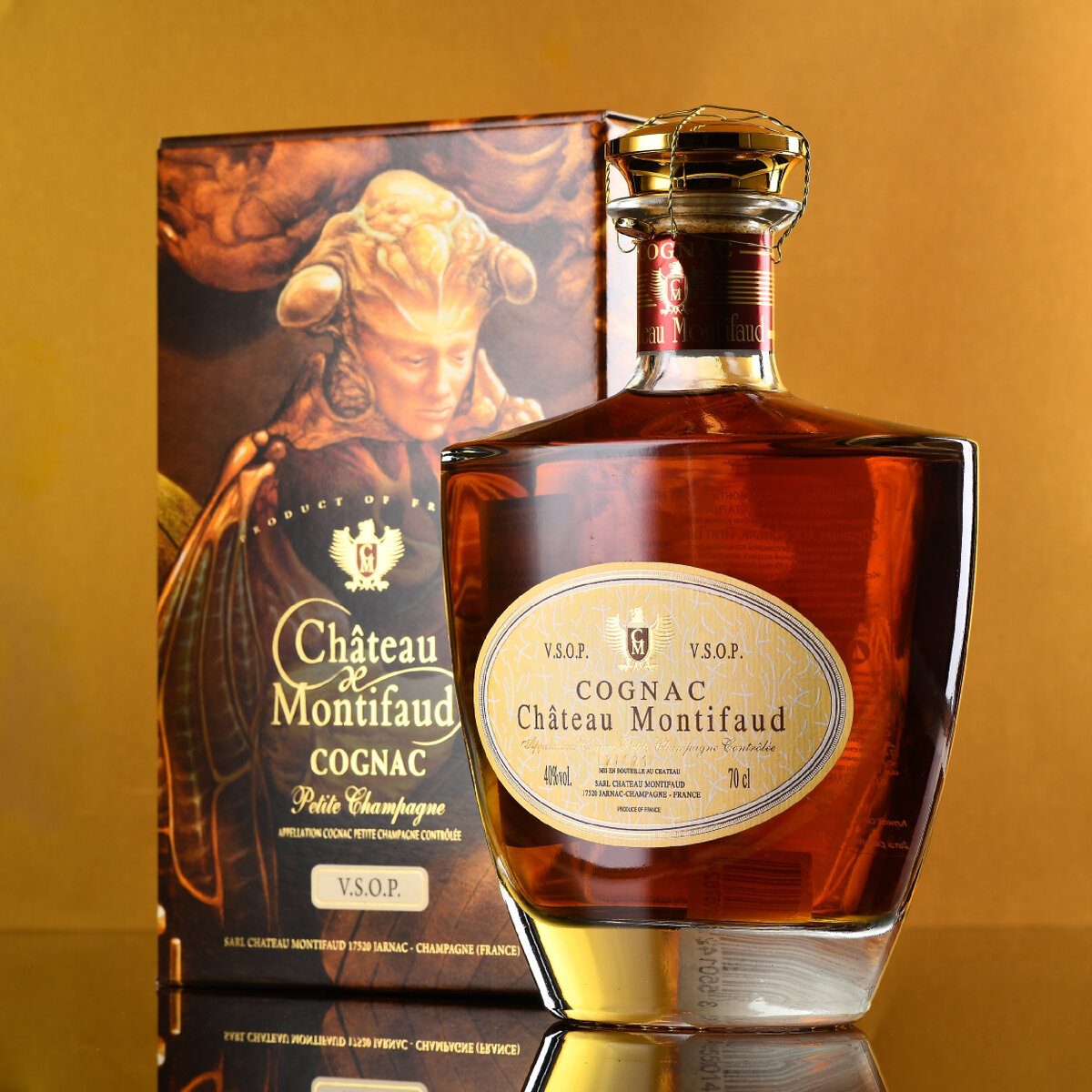 Коньяк Chateau de Montifaud VSOP Clemence Fine Petite Champagne - легко узнать по яркой, завораживающей, интригующей и немного жутковатой упаковке. От демона на подарочной упаковке, сидящего и что-то мастерящего с задумчивым видом, невозможно оторвать взгляд, и он точно не затеряется в Вашей коллекции. Сразу рождается мысль насладиться этим невероятным напитком в тихой, спокойной обстановке под хорошую сигару в хорошей компании. Этот восхитительный коньяк выдерживается в бочках из французского дуба от 8 до 10 лет, спрятанных в «подземном парадизе» Монтифо, где царит идеально сухой и прохладный климат для длительного созревания спирта. В результате был получен восхитительный напиток, богатый традиционными для коньяка ароматами сладкого винограда, полированного дуба, цветов и орехов. Некоторые ароматы сухофруктов, кокоса и масла — приятные дополнения, указывающие на неповторимый стиль Montifaud. В Коньяке лишь немногие производители имеют в своём названии слово "Шато" - замок. Это пра