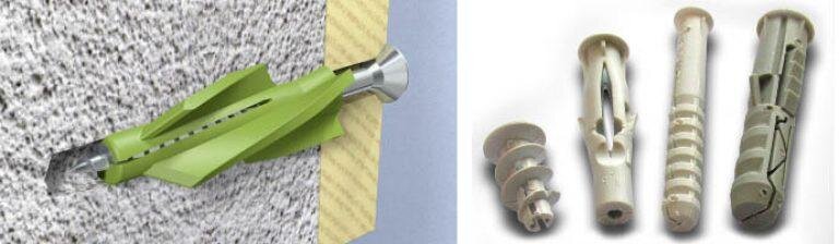 В зависимости от материала разделяются на металлические (стальные нержавеющие или покрытые антикоррозионными составами, из латуни или сплавов цинка и алюминия) и пластиковые (нейлоновые, полиэтиленовые или полипропиленовые). Первые считаются более надежными и подходят для сложного и сквозного монтажа, их единственным недостатком является способность к окислению при длительном воздействии влаги. Такие дюбеля оснащаются стопорными элементами, снижающими риск проворачивания или проваливания тяжелых метизов внутрь газоблоков. Их рекомендуют использовать для строительных конструкций и навесной мебели. Пластиковые крепежи ценятся за легкость, стойкость к коррозии и многофункциональность. Лучшие прочностные характеристики имеют нейлоновые (полиамидные), их советуют приобрести для радиаторов, раковин, карнизов и полок, они позволяют безопасно пользоваться кухонной мебелью. Полипропиленовые не уступают им в чистоте и стойкости к агрессивным средам, но плохо переносят низкие температуры и не подходят для применения снаружи.